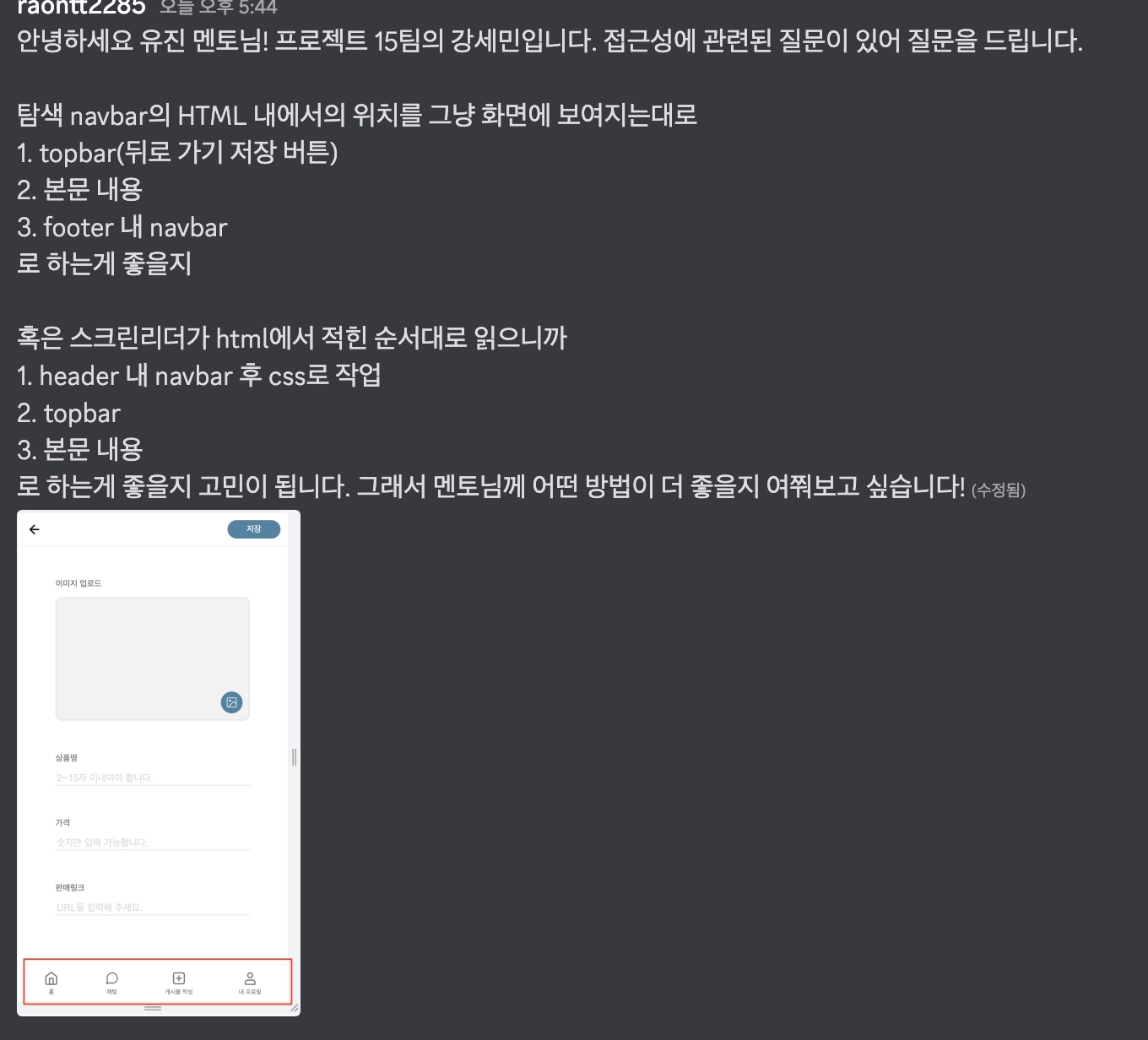 navbar html 내 위치 고민됨(유진 멘토님께 질문 일단 드렸습니다.) - nav로 감싸서 밑에 두기