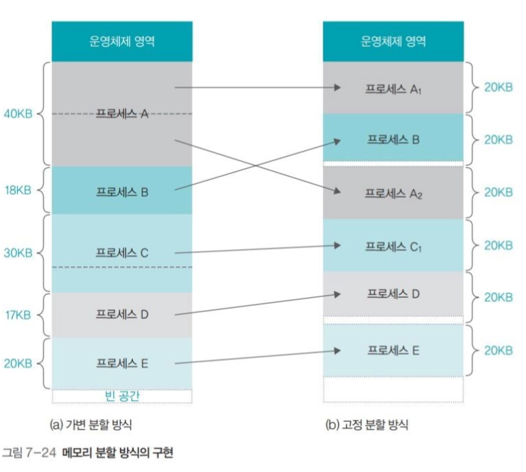 가변 분할 방식은 프로세스의 크기에 따라 메모리를 나누는 것
