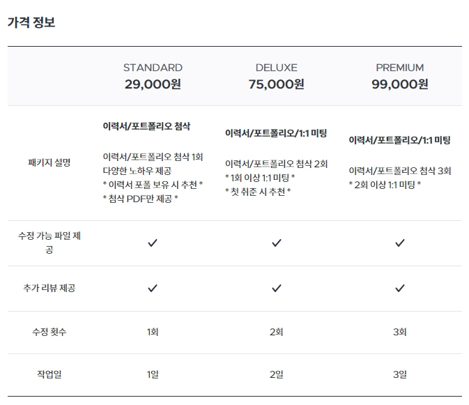 이력서 코칭 금액