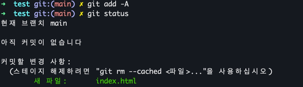상기 명령어를 사용하기 위해서는 현재 위치한 경로가 git 영역으로 초기화된 상태여야 합니다.