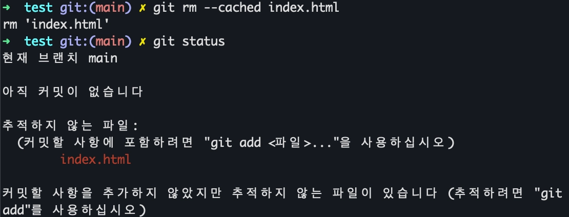 추적하고 있는 파일 중 commit 대상에서 제외가 필요한 것은 다음의 명령어로 해제가 가능합니다. 추적이 해제가 되면 git add 명령어를 실행하기 이전으로 되돌아 갑니다.