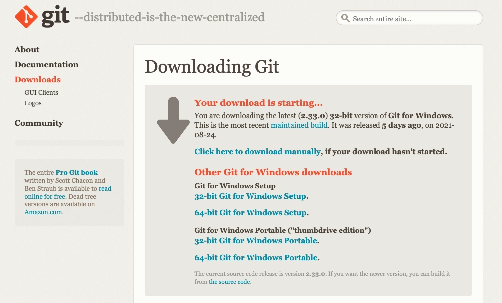 git은 운영체제별로 설치하는 방법이 상이합니다. 각 운영체제에 맞는 방법을 참고 해주세요. 참고로 2.28 버전부터 기본 체크아웃 브랜치명이 master 에서 main 으로 변경되었기 때문에 설치 후 반드시 버전 확인 부탁드립니다.