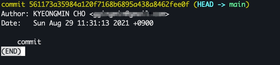 작성한 소스를 누가, 언제 commit 했는지 확인이 필요한 경우 로그를 조회할 수 있습니다. 로그 창에서 빠져나오기 위해서는 : 을 누르고 q 를 누르면 됩니다.