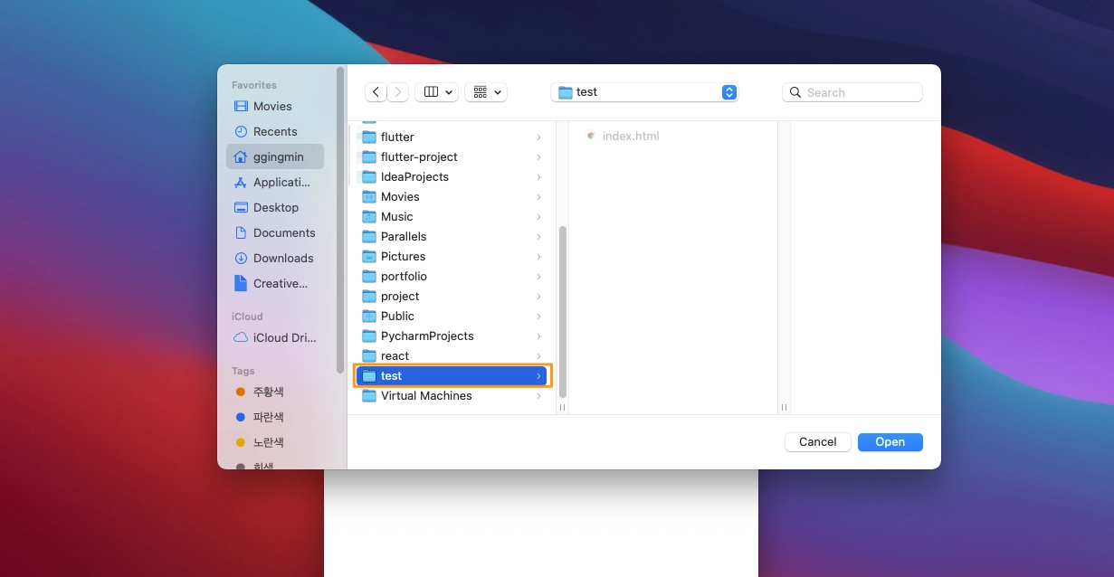 2) 작업 중인 디렉토리를 선택합니다. 이 디렉토리는 git 초기화가 되어있어야 합니다.