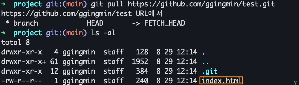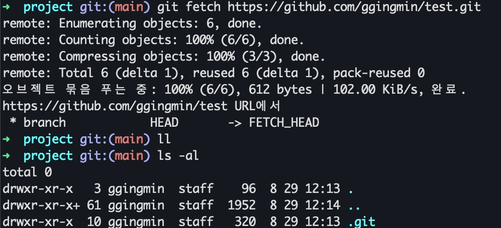 원격 저장소의 내용을 로컬 저장소로 받아오기는 합니다. 하지만 로컬 저장소는 내 컴퓨터에 저장이 되어 있을 뿐이지 우리가 우리가 실제로 작업하고 있는 Working Directory가 아닙니다. 즉, fetch 만으로는 직접 작업을 하거나 수정을 할 수가 없습니다.