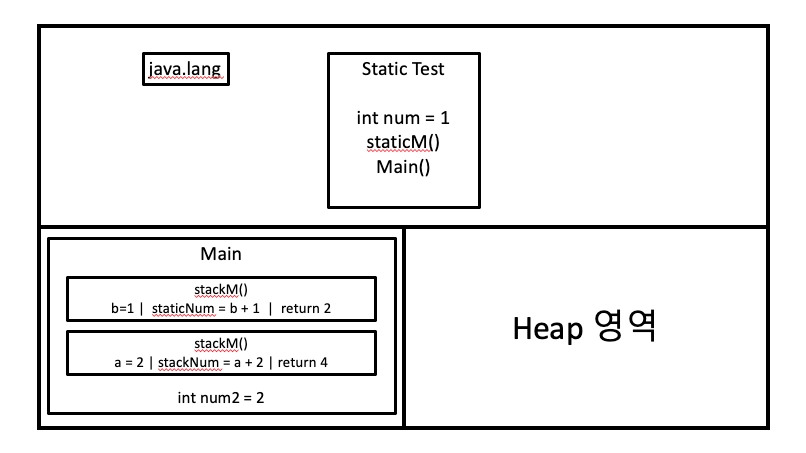 기본적으로 자바는 변수나 메서드를 메모리에서 Stack영역에 저장합니다