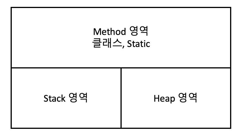 기본적으로 메모리에는 Method, Stack, Heap영역이 존재합니다