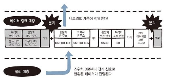 → 주소가 같다면 이더넷 헤더와 트레일러를 분리