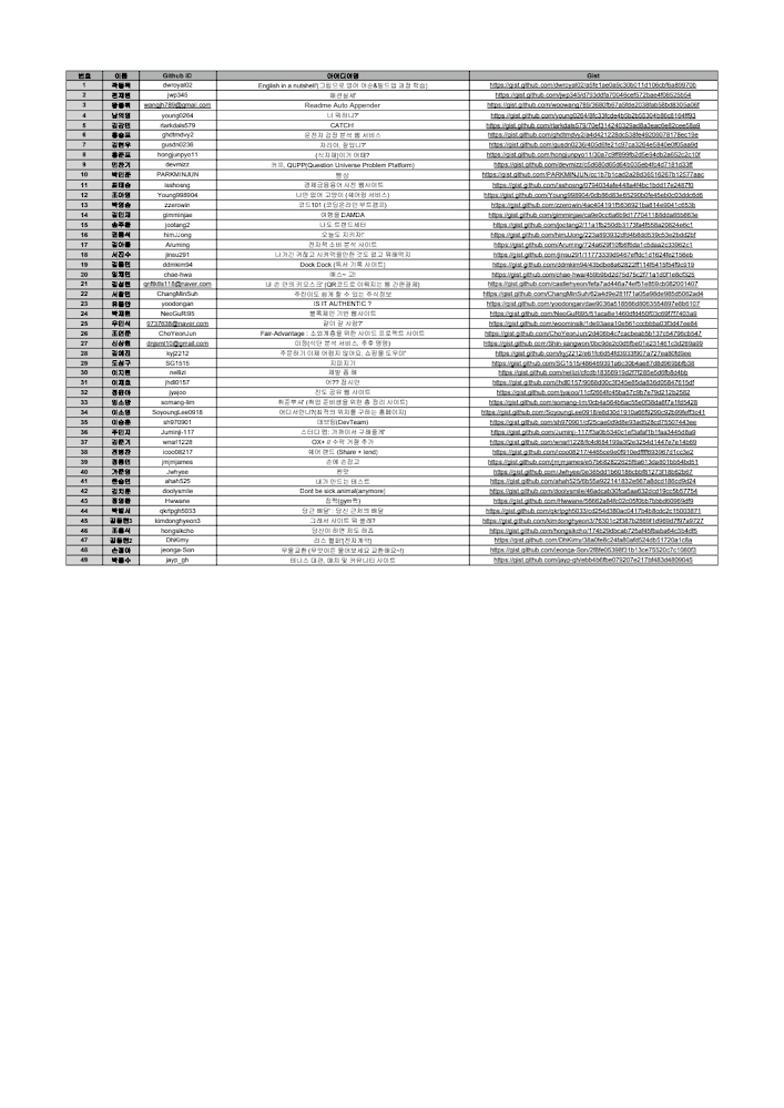 모든 아이디어를 천천히 살펴 보시고, 본인이 리뷰하고싶은 아이디어 번호를 구글 스프레드 시트 기준으로 기재해주시기 바랍니다.