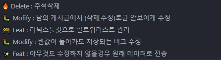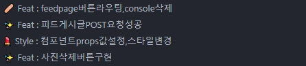 영어컨벤션은 5개만 사용 (Feat, Add, Modify, Style, Delete)
