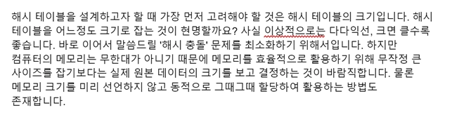 Hash 충돌이 나지 않으면서, 메모리를 너무 많이 쓰지 않는 크기를 정한다.