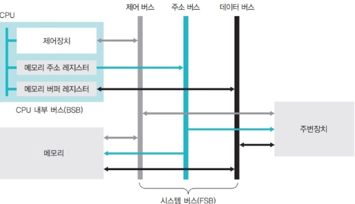 버스는 CPU와 메모리, 주변장치 간에 데이터를 주고받을 때 사용한다.
