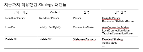 앞서 구현했던 JDBC 로드 및 커넥션 생성을 담당하는 ConnectionMaker 또한, 위 그림에서의 전략(Strategy) 부분에 해당합니다.