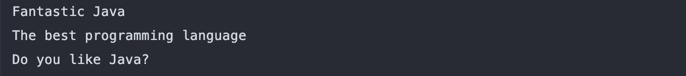 System.out.println("Fantastic Java"); //case 3에서 조건이 맞아 출력되고, break 문을 만나 빠져나옴으로써 default는 출력되지 않는다.