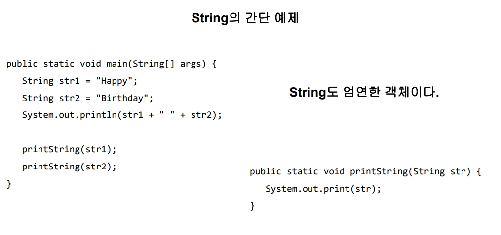 String은 primitive variable이 아니다. Stirng도 참조 변수로 사용되고 값이 할당되면 객체이다.