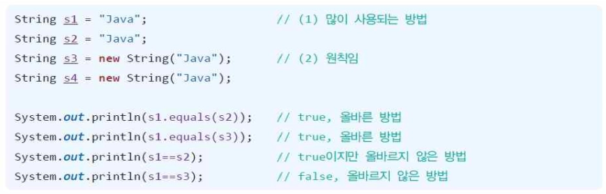 String str4 = new String("example"); // new 연산자를 이용한 방식