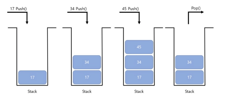 스택을 흔히 선출후입(LIFO)이라고 부른다.