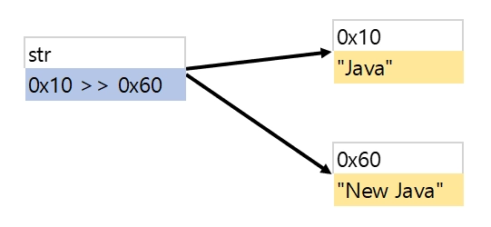위 그림처럼 String 안의 내용이 바뀌면 가리키는 주소 값이 바뀌고, 기존의 값은 메모리 영역에 남아있다. (JVM의 GC가 처리)