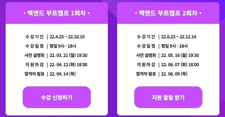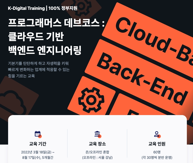 교육기간: 2022/02/08(화) ~ 11월 말 (약 10개월)