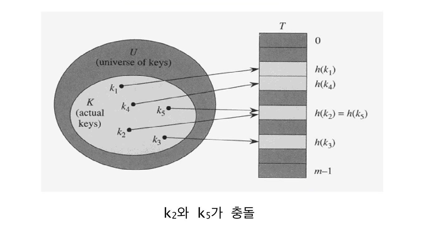 만일 혹시라도 해시 함수가 결과값으로 같은 저장 위치를 제공하면, 충돌이 발생한 것이다 (Hash Collision). 충돌을 해결하기 위해서는 세 가지의 방법이 있다.
