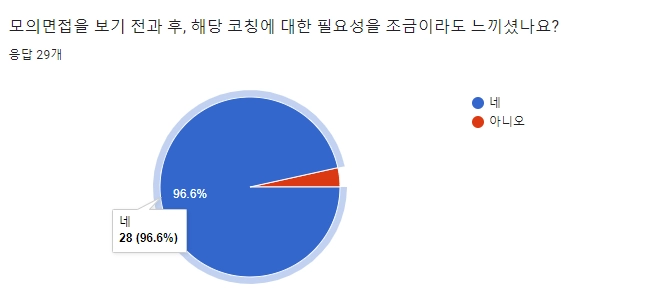 모의면접을 보기 전과 후, 해당 코칭에 대한 필요성을 조금이라도