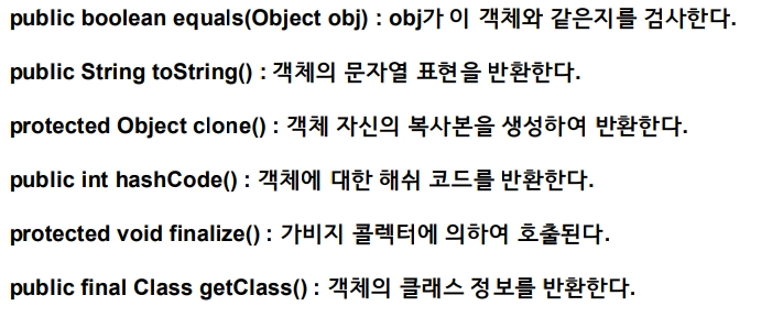 모든 클래스와 배열 종류들은 Object 클래스의 메소드들을 상속받는다.