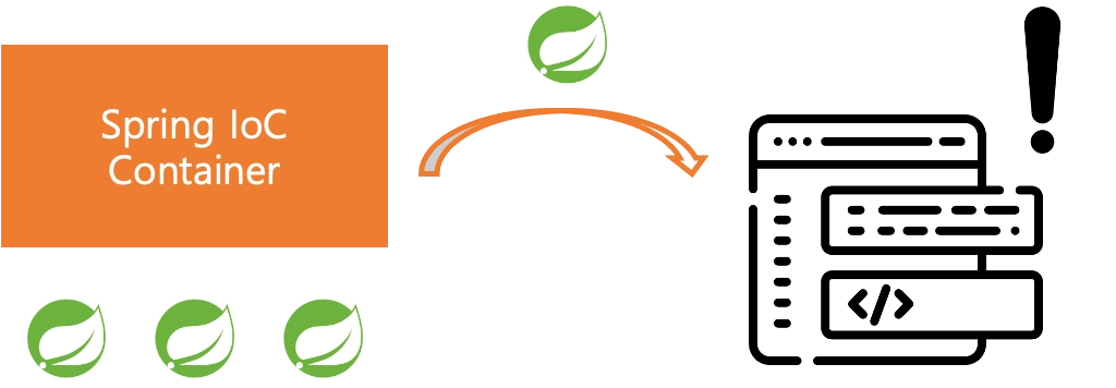 개발자가 정의한 클래스들이 Spring Container에 Bean의 형태로 등록되면, 다시 Spring Application에 해당 클래스가 필요한 시점에 만들어진 Bean 객체를 전달하게 됩니다.