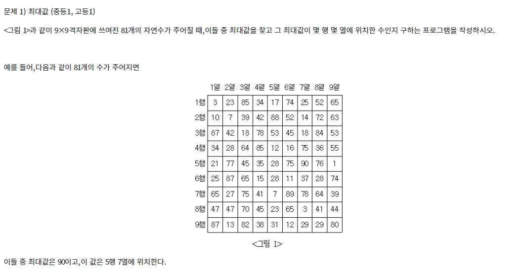 주어지면 이들 중 최대값은 85이고, 이 값은 8번째 수이다.
