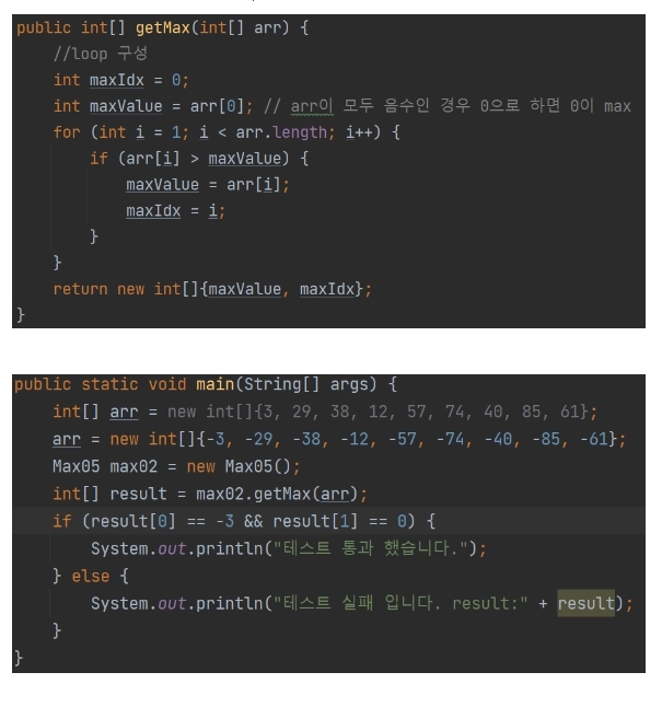 int max = arr[0]; 배열의 첫번째 값으로 max값 초기화