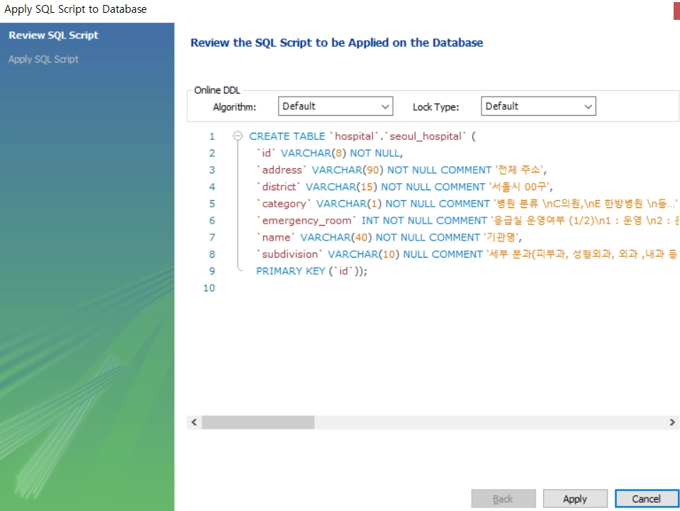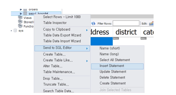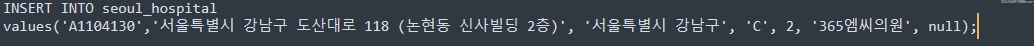 SQL INSERT script logic (서울시 병의원 위치정보 파일 활용)