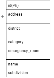 (`id`,`address`,`district`,`category`,`emergency_room`,`name`,`subdivision`)