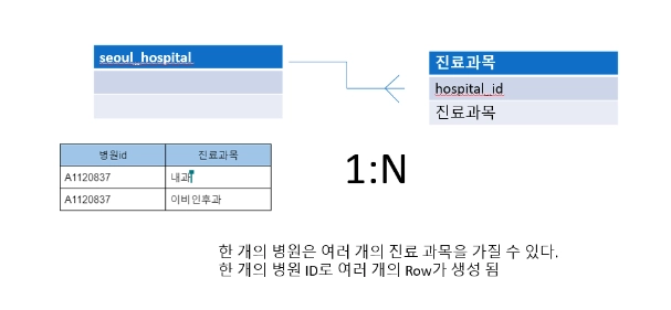 subdivision | 세부 분과(피부과, 성형외과, 외과 ,내과 등) | VARCHAR(10) | 비뇨기과 피부과 성형외과 외과 내과 등 |
